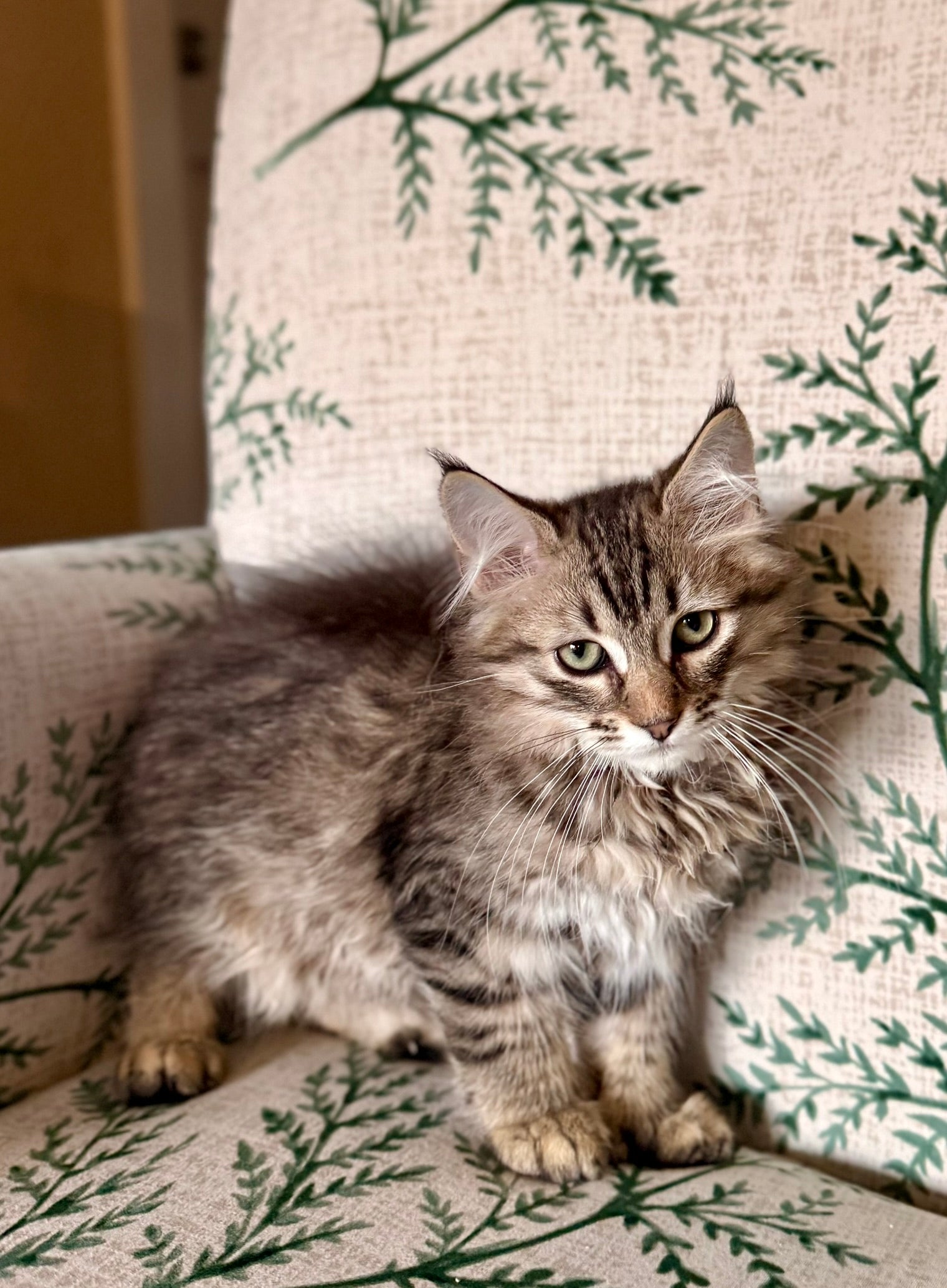 Delilah is our sweet and spunky little Pixiebob kitten who’s always in the middle of the fun. She loves to be part of whatever’s going on—whether it’s chasing toys, exploring new spots, or keeping an eye on her siblings. With her playful energy and curious spirit, she brings so much joy to our home. And when it’s time to relax, Delilah turns into the best little snuggler, curling up close for love and purrs.