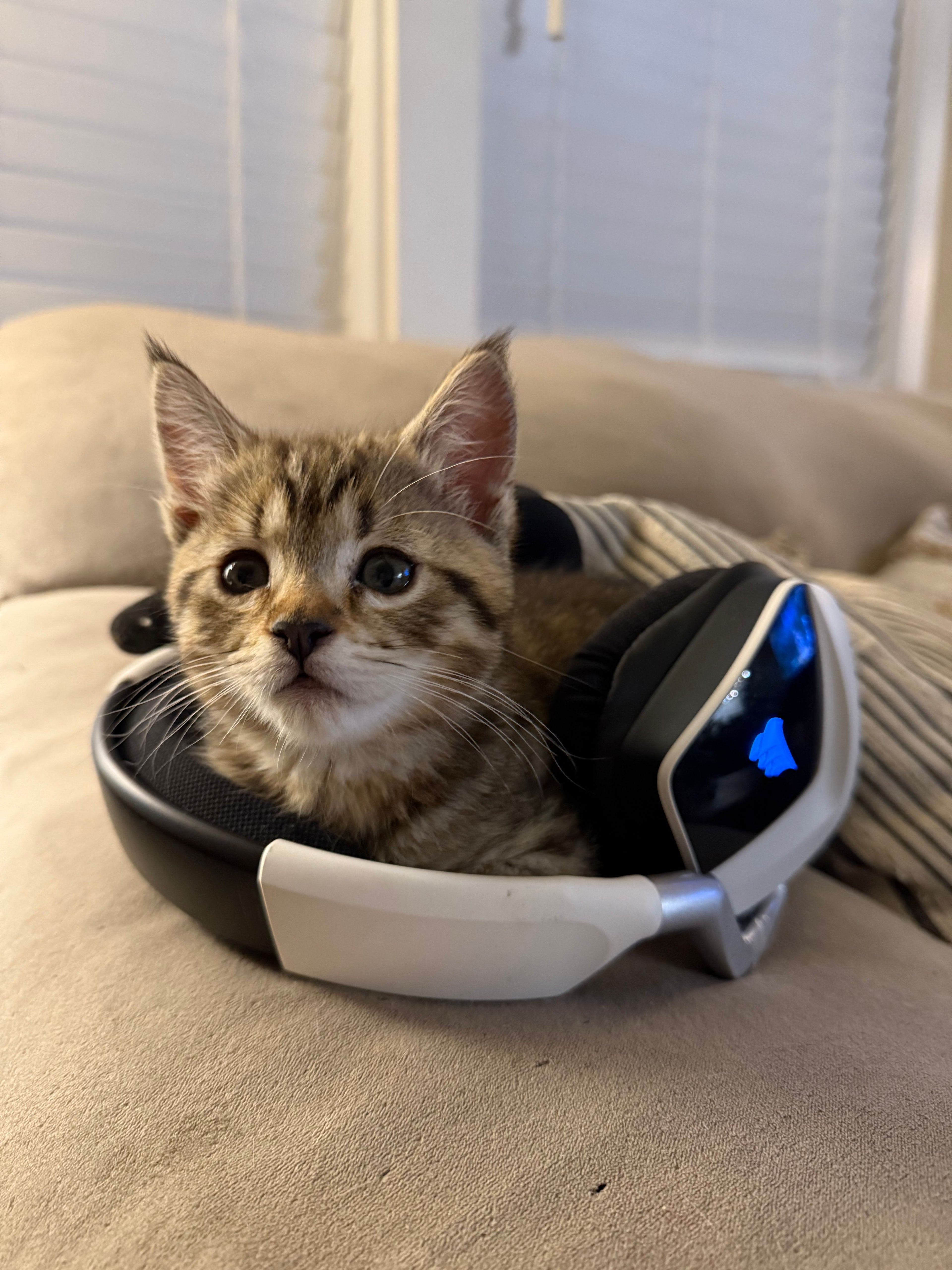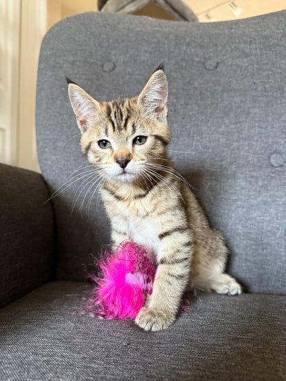 Delilah is our sweet and spunky little Pixiebob kitten who’s always in the middle of the fun. She loves to be part of whatever’s going on—whether it’s chasing toys, exploring new spots, or keeping an eye on her siblings. With her playful energy and curious spirit, she brings so much joy to our home. And when it’s time to relax, Delilah turns into the best little snuggler, curling up close for love and purrs.